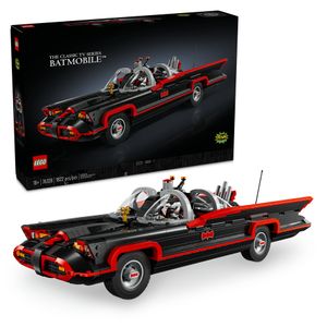 The legendary Batmobile from the 1966 TV show is brought to life with this eye-catching model designed for adult enthusiasts. Authentic features include a molded windshield, moving wheels, decorative elements, and an opening trunk that houses the Bat-Computer. For added prestige, this collectible build-and-display model includes a vehicle information plate and a 1966-style Batman minifigure.
