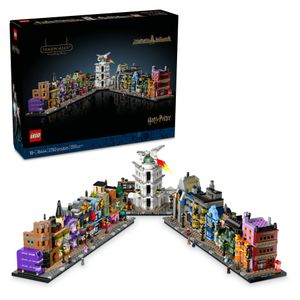 A magical creative journey unfolds with this stunning microscale model of Diagon Alley. Builders reboth exterior and interior details of iconic locations such as Weasleys' Wizard Wheezes, Gringotts Wizarding Bank, the Leaky Cauldron, and more. The model folds out into a single street for display. Twelve microfigures of Harry Potter characters and the Knight Bus complete this spellbinding centerpiece.