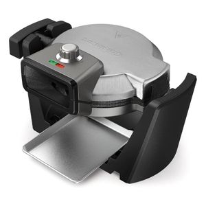 Introducing an innovative new way to cook waffles! The Cuisinart Convertible Belgian Waffle Maker makes perfect plain and Belgian waffles while taking up less room on the counter. In the vertical position, the batter is added through a pour spout right up to the fill line, so there's no chance of over or under filling. Use the horizontal position to easily add nuts, fruits, chocolate chips and other mix-ins to each waffle. Waffle thickness is kept consistent, from top to bottom and side to side. Indicator lights and an audible alert, plus five browning levels, ensure waffles are baked to your exact preferred shade.