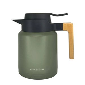 This 1.2L stainless steel carafe is insulated to preserve heat or cold and is equipped with a wood handle for easy carrying. The elegant green color adds a touch of style to any table setting. Hand wash for best results.