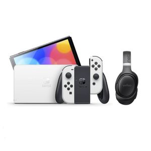 Nintendo Switch Console OLED Model - White with Bluetooth Wireless Headphones - Black Grey