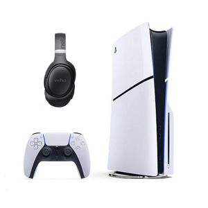 PlayStation 5 Slim Console - White with Bluetooth Wireless Headphones - Black Grey