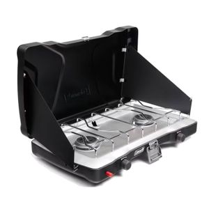 The Triton 2-Burner Propane Gas Camping Stove makes it easy to cook great meals outdoors. Its built-in carry handle makes it easy to unload from the trunk to the campsite while the push-button Instastart ignition means you won't have to wait for matches to start cooking.