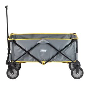 This durable, rugged, goldable, utility wagon has 5 cu. ft. of carrying space, perfect for transporting sleeping bags, coolers, sports equipment and even your tent. Tough, heavy-duty polyester fabric, a removable, reinforced bottom and a steel frame provide reliable hauling season after season. The handle connects directly to the axle, giving you superior control. After everything is unpacked, the wagon folds up accordion-style and fits into the included carry case.