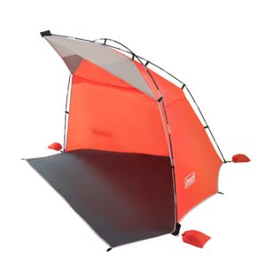 It's compact, weighs just 4 lb, and sets up easily with pre-attached poles. The extended floor lets you stretch out, and the extended roof gives you extra shade from the midday sun. A rear vent for added airflow, a UV Guard material with UPF 50+ sun protection, 7 stakes and 3 sandbags keep the shade in place. Plus, 2 gear pockets let you stash small essentials. Fits 2 people.