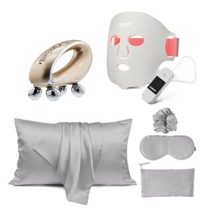 3 in 1 Revolutionary device for cellulite reducing, body toning and skin tightening. The Numiere Body is a revolutionary, FDA cleared as medical device class II at home treatment to tone and firm body skin while smoothing away cellulite and wrinkles. The Numiere Body device harmonizes the benefits of three sources of energy: Bi Polar RF, Sonic, and RED LED light therapy. This 3-in-1 powerful device creates a safe, painless and effective at home treatment to reduce the appearance of cellulite and body fat. The Numiere Body will help stimulate cell renewal, reduce the appearance of cellulite, and firm and tighten your skin. The True Glow LED Facial Mask is designed to deliver professional-grade anti-aging treatment from the comfort of home. In just six minutes a day, its LED light technology helps reduce the appearance of fine lines and wrinkles, enhances skin tone and radiance, and promotes a firmer, more youthful look. Crafted from medical-grade silicone, the mask is soft, lightweight, and comfortable. Its portable, wireless design allows for convenient use anytime. Featuring a Velcro closure and intuitive controls, it ensures a relaxing and effective skincare experience. This luxurious 4-piece set features a 100% silk pillowcase, matching scrunchie, sleep mask, and drawstring pouch in a sleek silver-grey finish. Designed for a smooth, gentle touch, it helps reduce friction on hair and skin while adding an elegant, spa-like feel to your bedtime routine.