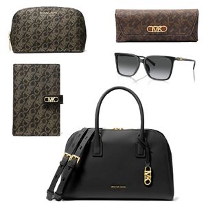 In a bowling-bag-inspired shape, our Ashton satchel is anchored by top handles and a wide double buckle strap for a tactile touch. Its pebbled-leather exterior promises luxe durability, while the open interior allows room for every essential. Featuring our new Empire Signature Logo print and gold-tone hardware, this case makes daily accessorizing feel instantly chicer. Reach for it to keep your glasses safely protected inside the soft suede-like interior. Pairing the new Empire hardware with elegant shapes. Rendered in an oversized silhouette, these sunglasses instantly elevate any look. This passport wallet makes airport travel a breeze with an organized interior that keeps everything in one place, including your cards, ID, and boarding pass. It's crafted from durable canvas finished with our Empire logo print for a graphic touch. Whether you're traveling or looking for a chic way to organize your tote bag, this zip pouch is up to the task. It's crafted from our Empire monogram for a graphic look and features an open, lined interior perfect for storing smaller items.