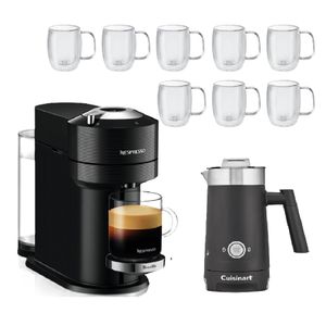 Vertuo Next takes the full range of Nespresso coffee styles even further with four cup sizes available to brew at the touch of a button. With a sleek new design made from 54% recycled plastics and stylish chrome accents, Vertuo Next will fit any kitchen and to go the extra mile, even connects to WiFi and Bluetooth to ensure its software is always up-to-date. Top off lattes, cappuccinos, macchiatos, and more with rich, creamy foam made with the Cuisinart Hot/Cold Foam Milk Frother. At the touch of a button, it makes up to 4 oz. of hot or cold froth for all your specialty beverages or heats up to 8 oz. of hot milk. Whip up thick foam with the frothing whisk or use the milk-warming stirrer when heating up milk. Designed with an easy-grip handle and spout, this innovative frother makes it easy to make barista-worthy latte art. And the nonstick milk tank, wipe-off exterior, and dishwasher-safe lid make it easy to clean. This set consists of eight (8) double-walled borosilicate double espresso glasses. This material resists temperature fluctuations, making it ideal for both hot and cold drinks.