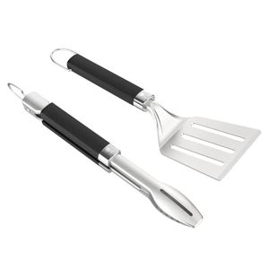 A compact, 2-piece stainless steel grilling kit designed for on-the-go use, featuring a spatula and locking tongs ideal for camping or small barbecues. Durable and dishwasher-safe, this lightweight set is perfect for travel and everyday grilling needs.