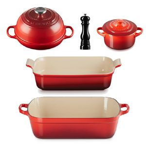 Oven to Table Cooking Set with Pepper Mill - Cerise/Black