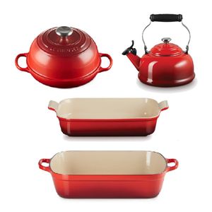 The Le Creuset Bread Oven takes home baking to the next level of delicious and beautiful. Crafted from our legendary cast iron for superior heat distribution, this purpose-built shape is designed to produce bakery-quality results. The even heat distribution of this versatile Rectangular Roaster makes it ideal for oven-roasted chicken, homemade lasagna, casseroles and roasted vegetables. Its wide handles make for easy maneuvering with oven mitts. The Heritage stoneware rectangular dish is a smart solution for a variety of recipes, as well as common kitchen tasks like marinating and breading. Its deep sidewalls ample cooking space for casserole fillings, while its stoneware construction maintains proper hot and cold temperatures for dishes prior to serving and during meals. At home in both traditional and contemporary kitchens, this fresh take on a classic design maintains the styling of an antique with elements of modern technology, like a unique bracketed handle for added control and safety when pouring hot water. Suitable for all heat sources, including induction, Le Creuset kettles are crafted from premium carbon steel and finished with a vibrant, chip-resistant porcelain enamel. Useful for preparing French press coffee, oatmeal and much more in addition to tea, Le Creuset kettles make excellent gifts and are a simple yet effective way to add a touch of colour to the kitchen.