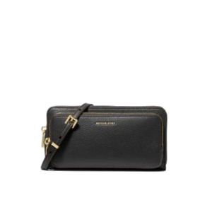 Streamlined yet spacious, our Jet Set continental crossbody bag is crafted from pebbled leather with gold-tone hardware for sophisticated appeal. This large-sized style features a sleek rectangular silhouette with organized compartments to keep your essentials secure and a removable adjustable strap for versatile carrying options. Wear it crossbody for hands-free convenience or carry it as a clutch for polished evening style.