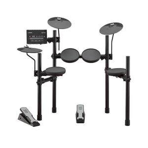 The DTX402K features the DTX402 drum trigger module with 287 drum and percussion voices and 128 keyboard sounds. The module is equipped with 10 preset kits that can all be replaced with customized settings, while the physical kit features a snare pad, three tom pads, and a KU100 silent kick unit, as well as a hi-hat pad that works in tandem with the hi-hat controller pedal, supporting open, closed, and foot-splash hi-hat use. Additionally, there are two large cymbals for crash and ride. The module also includes 10 training sessions for all skill levels, as well as 10 play-along songs for practicing. The Yamaha Rec N' Share app has been updated, providing even more powerful learning tools. The Yamaha DTX402K includes a drum key, two cable bands, and an AC power adapter.