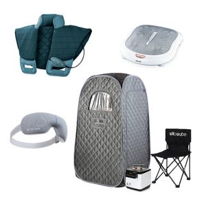 The only eye mask to feature SmartSense Technology, our exclusive biometric sensor with personalized treatments that help reduce your heart rate to a more relaxed state. Wear them to alleviate headaches, relieve eye fatigue, and calm your body and mind. Whether you spend long hours in front of a screen, suffer from headaches or anxiety, or have trouble sleeping, SmartGoggles keep you moving throughout the day and help you rest at night. Introducing the delightful portable steam sauna, designed to bring comfort and tranquility right in the cozy confines of your home! Experience the soothing power of steam and indulge in a truly rejuvenating and safe retreat, whenever and wherever you desire, thanks to its ingenious portable design. In a mere 10 minutes, you can effortlessly set up this product. Step into the sauna, and program a blissful 30-minute steam session. Add a few drops of your favorite essential oil, and let the aromatic steam envelop the enclosure, creating an oasis of relaxation. Massage for stressed feet. Everyone can find the right setting for them to ensure a relaxing foot reflex zone massage thanks to 18 massage heads, 2 massage speeds and the adjustable inclination angle. The Shoulder and Back Massager provides a heated upper back and neck massage. The massager comes pre-programmed with 2 massage patterns and optional heat. It also contains hand grips that allow you to control the position and intensity of the massage.