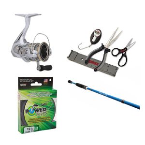 Spinning Reel, Rod, Fisherman's Tools, and Green Fishing Line Set