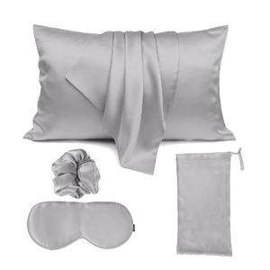 This luxurious 4-piece set features a 100% silk pillowcase, matching scrunchie, sleep mask, and drawstring pouch in a sleek silver-grey finish. Designed for a smooth, gentle touch, it helps reduce friction on hair and skin while adding an elegant, spa-like feel to your bedtime routine.