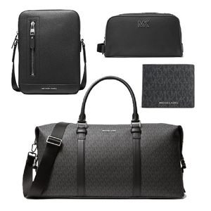 Featuring the signature print allover, the Hudson weekender bag is designed in a structured silhouette with a notably spacious interior. It's equipped with top handles as well as a detachable crossbody strap, making it easy to carrywhether you're catching a train to the office or a flight for a weekend getaway. The Hudson flight bag is a stylish option for days when you want to travel light. Crafted from rich pebbled leather, this compact style is perfectly sized to hold your passport, phone and wallet. An exterior zip pocket keeps your cards or boarding pass within easy reach, while the webbing strap adjusts for comfortable, hands-free wear. Consider the Hudson billfold wallet a must-have. Rendered in Signature Logo-print canvas, this sleek accessory opens to a lined interior with ample pockets for your cards. Keep your license or building pass in the ID window. Any man will appreciate our Eli travel kit with its minimalist design and sporty yet durable nylon construction. Count on it to store your everyday favorites or to keep you organized on holiday.
